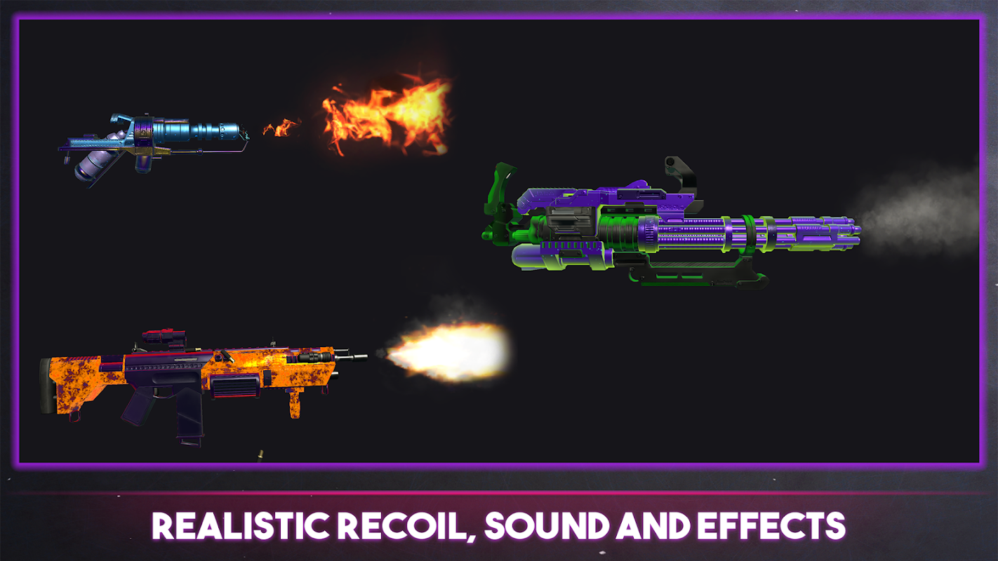 برخلاف اکثر بازی های شبیه ساز اسلحه، در اینجا شما تیراندازی واقعی با اسلحه را تجربه خواهید کرد. به سادگی حالت شبیه ساز اسلحه را انتخاب کنید و برای آزمایش هر تفنگ تهاجمی، برای شلیک ضربه بزنید. از جلوه های بصری خیره کننده و تصاویر و صداهای سفارشی تیراندازی برای هر سلاح لذت ببرید.