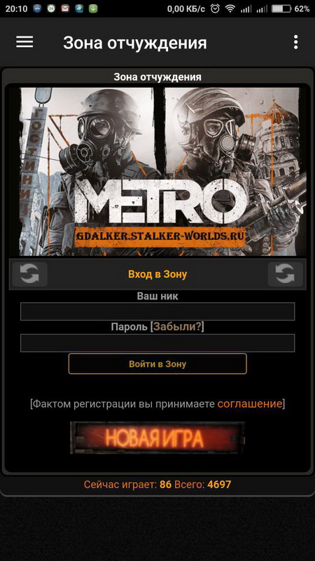 G.D.A.L.K.E.R. - это браузерная игра (MMORPG) по миру МЕТРО нового поколения для мобильных телефонов.