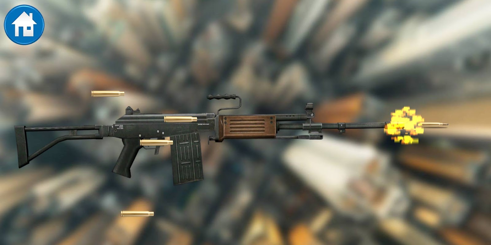 Are you ready for a realistic experience with Galil, one of the most famous machine guns, in the Galil machine gun simulator game? You can start experimenting by choosing one of 4 different weapons. First, you must choose your weapon and then you can shoot it by touching your finger anywhere in the game window. You can switch to the weapon changing screen by pressing the menu button at the top right.