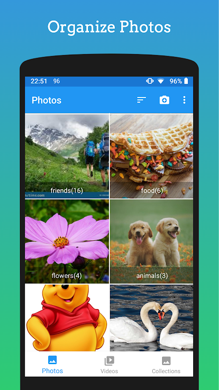 Simple Gallery یک برنامه عالی و غنی از ویژگی برای سازماندهی عکس ها و فیلم های شما است. نمایش سبک نمایش اسلاید عکس ، اشتراک گذاری عکس ها از طریق ایمیل یا شبکه های اجتماعی. این کاربر گالری هوشمند است که می تواند عکس ها و فیلم ها را با نام ، تاریخ ، اندازه و موارد دیگر مرتب کند.