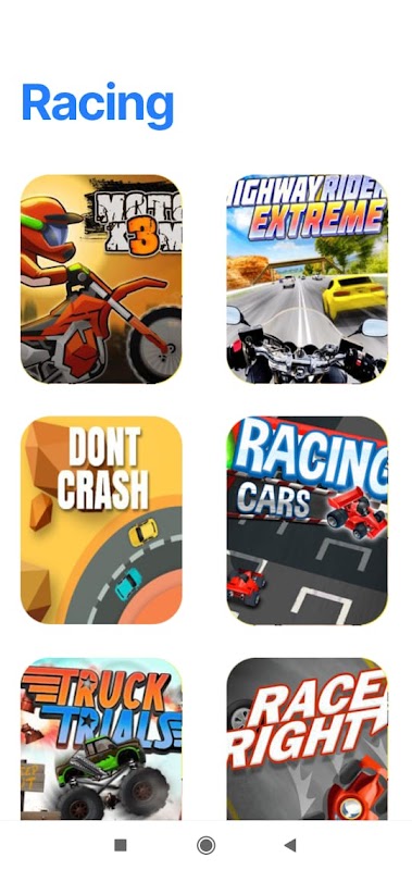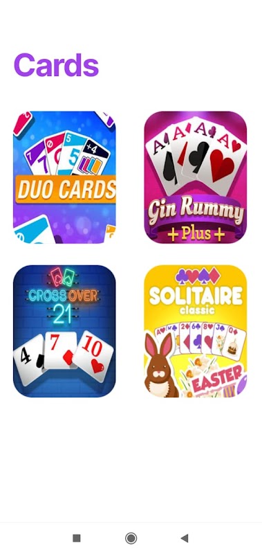 این بازی دارای دسته های مختلفی از بازی ها مانند اکشن ، کلاسیک ، مسابقه ای ، ذهن ، کارت ها است.