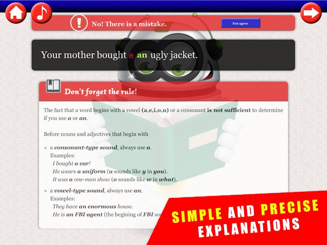 شما یک ستاره زمانی کسب میکنید که قواعد جدید گرامر را به کار میگیرید، اگر اشتباه میکنید، زندگی را از دست می دهید. هرچه بیشتر شما اشتباه می کنید، هوش مصنوعی بیشتر خواهد شد! آیا شما موفق به تکمیل تمام سطوح هستید؟