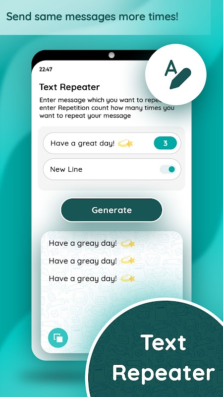 - تکرار کننده متن: پیام های متنی را در چند ردیف در یک ثانیه تکرار کنید و آنها را به اشتراک بگذارید.
