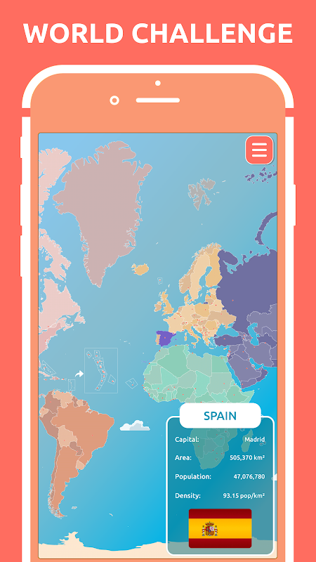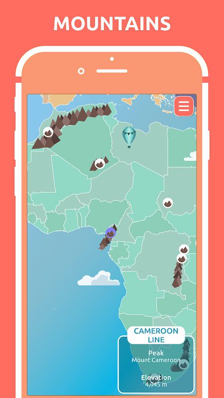 Learn geography the fun way! Countries, flags, mountains, rivers,...