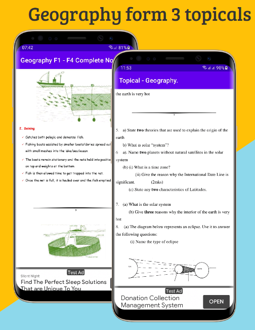 جغرافیا: برنامه سوالات موضوعی شامل سوالات موضوع به موضوع جغرافیا و همچنین پاسخ آنها می باشد. این اپلیکیشن مهارت های لازم برای پاسخگویی به سوالات را در اختیار کاربر قرار می دهد. این برنامه همچنین حاوی سوالاتی است که Kcse استاندارد شده است.