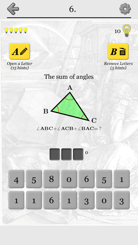 سه سطح وجود دارد: 1) سطح اول در مورد عناصر مثلث. 2) دوم در مورد انواع چند ضلعی. 3) آخرین سطح مربوط به دایره و اجزای آن است.