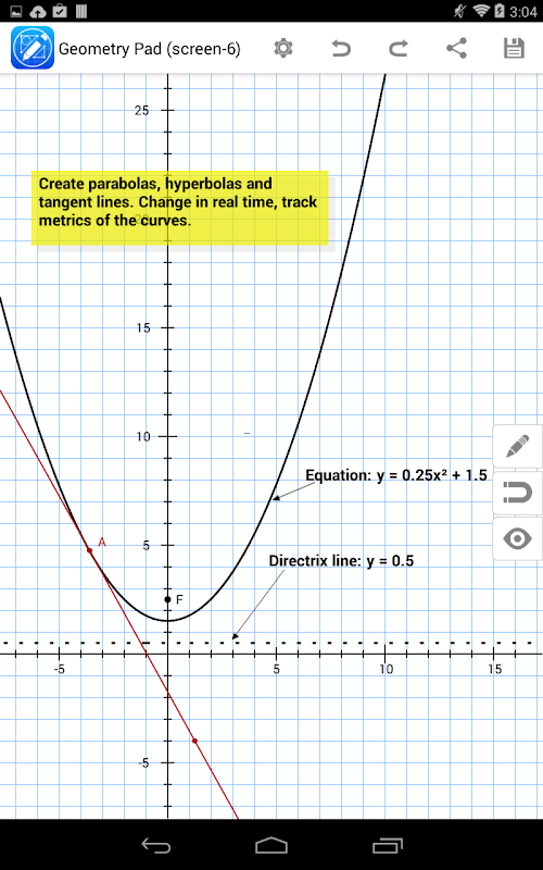 Geometry Pad is a dynamic geometry application for Android tablets with universal appeal. Teachers can use it in a geometry class for better students engagement and deeper understanding of geometric concepts. Students would benefit from using Geometry Pad while working on geometry assignments at home as well. Easily create complex geometric sketches, measure everything you have in your document, experiment with shapes and transformations.
