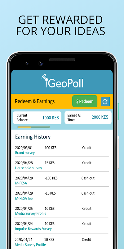 کارهای ساده و نظرسنجی را که راهنمایی تصمیمات مهم برای بزرگترین سازمانهای جهان است ، انجام دهید. با برنامه Android GeoPoll ، می توانید نظر خود را در نظرسنجی ها به صورت آنلاین به اشتراک بگذارید و برای زمان و مشارکت خود هزینه دریافت کنید. امروز بخشی از انجمن GeoPoll شوید و با درآمد کسب جهانیان به جهانیان کمک کنید.