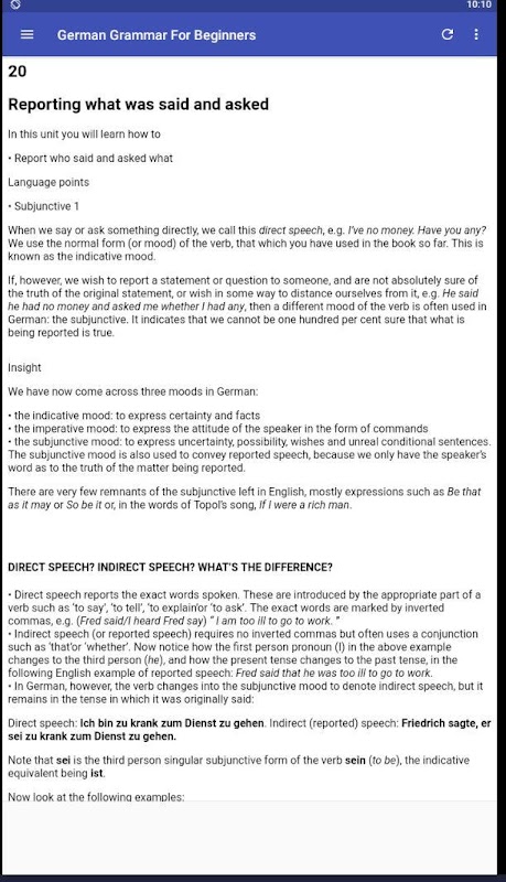 A particular feature of the book is the two-fold approach to the language, linking the communicative skills to the learning of grammar. The Functional grammar consists of 21 units illustrating the various uses to which the language can be put – for example giving instructions or talking about the recent past. The more traditional Reference grammar deals with grammatical structures, such as the imperative or the perfect tense. A few points not covered in the Functional grammar are to be found in the Reference grammar.