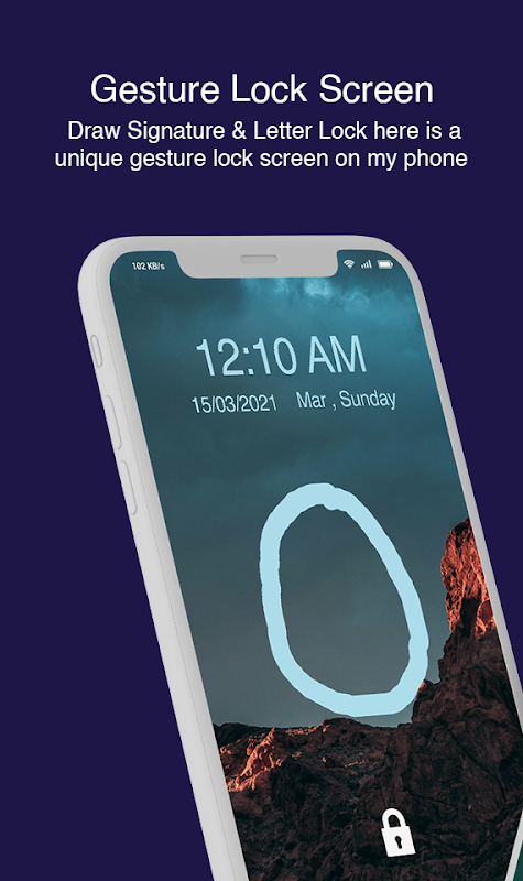 Gesture Lock Screen - Signature Lock Screen with have the option to draw your signature with your free finger. now no bored with old lock screen use our new design application which has no pattern lock and also no any number lock. draw your signature and anything you want to use to make as your mobile screen.