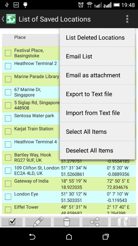 - لیست مکانهای ذخیره شده خود را به یک پرونده یا به عنوان پیوست ایمیل صادر کنید.
