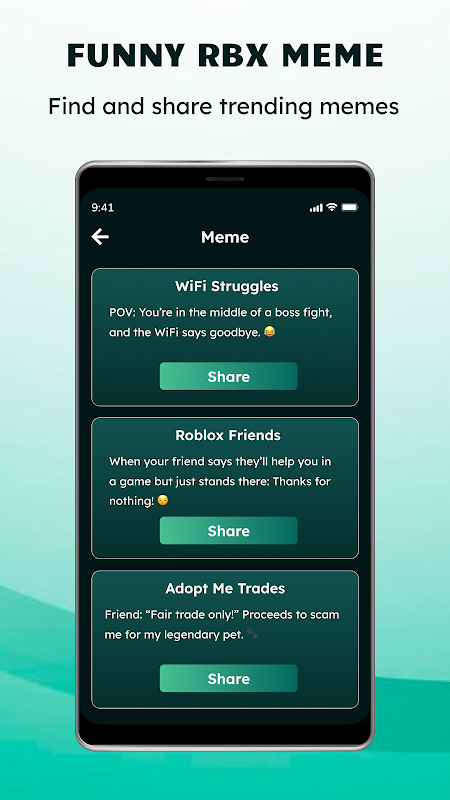 این برنامه غیر رسمی، که به OFFICIAL CORPORATION وابسته نیست، یک ماشین حساب RBX رایگان و مبدل روزانه robox را برای بازیکنان ارائه می دهد. این تقلب یا هک را ترویج نمی کند و بازی جوانمردانه را ترویج می کند.
