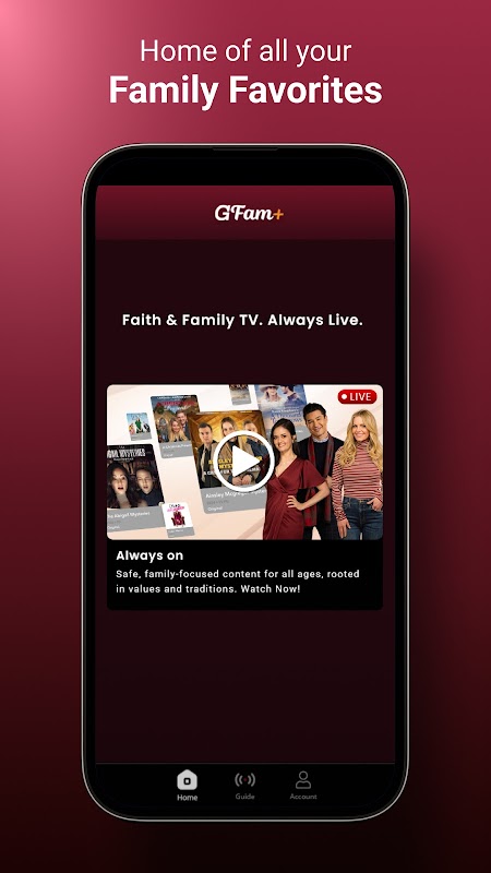 Introducing GFam+, your go-to app for streaming Great American Family and Great American Faith & Living—anytime, anywhere.