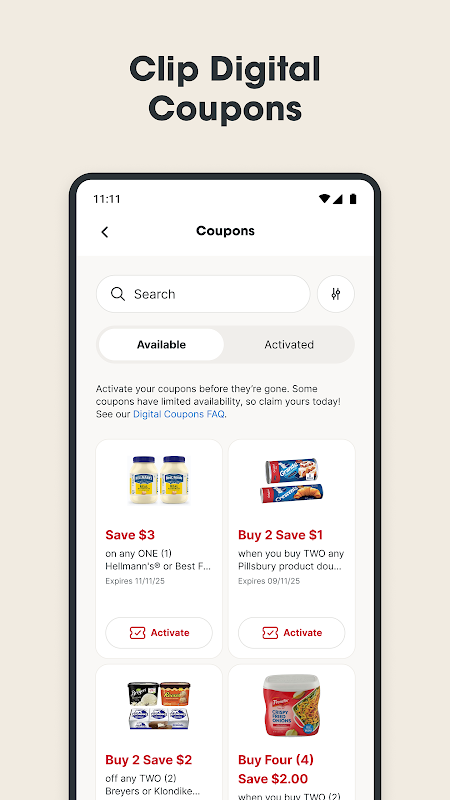 - کوپن های دیجیتال را برای پس انداز فوری هنگام بررسی با کارت وفاداری خود گیره دهید.