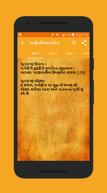 • قابلیت به اشتراک بگذارید تا به راحتی باگاواد گیتا shloka / آیه مورد علاقه خود را به دوستان خود ارسال گجراتی