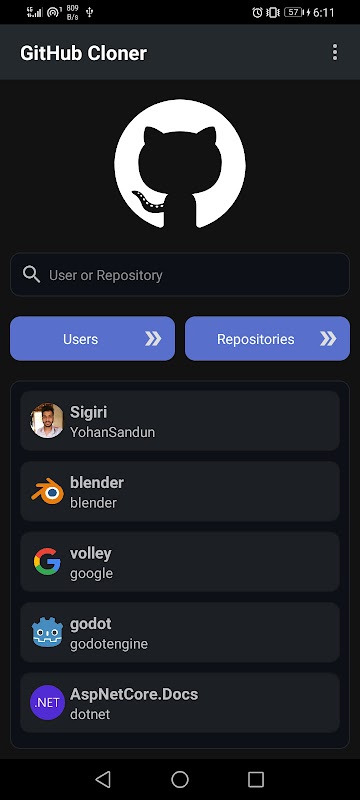 GitHub Cloner uses GitHub's ReST API to fetch information faster from GitHub servers.