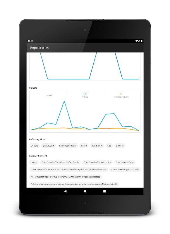 GitHub Insights lets you stay up to date with your repositories wherever you are. Monitor their growth, track engagement within them and see which are gaining traction.