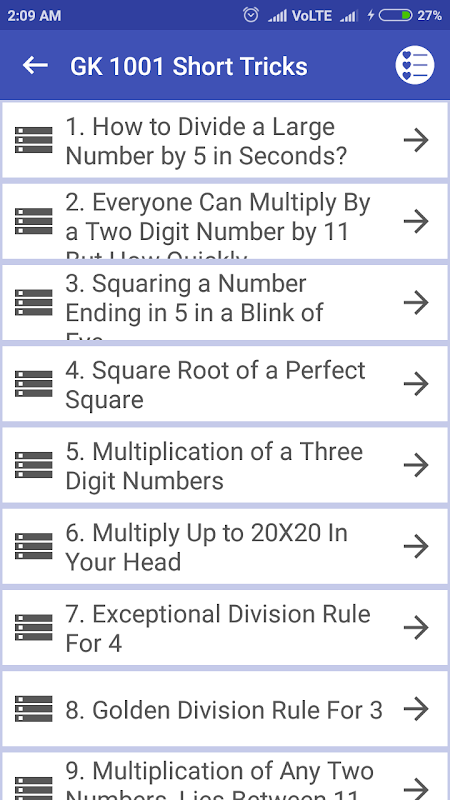 In this app you will find GK tricks category wise like history, geography, science, static gk etc.