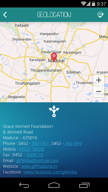 Grace Kennet Foundation (since 1947) in Madurai is a distinguished non-profitable health care institution, which has launched a mobile app for automation and efficiency. GKF mobile app is not just for the hospital but very useful for the patients and productive for the doctors, as we have varied features that explain About the Hospital, Hospital Services, Photo Gallery, Social Media Presence (Facebook and Twitter Feeds), Consultant Timings, Find Us through Geo Location, Camps and Events, Newsletters, Suggestions and Feedbacks.