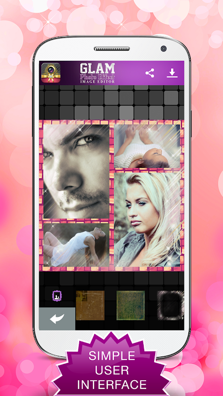 ♦ Glam Photo Effect Image Editor ♦ contains an exquisite collection of borders, overlays, and makeover templates which we have created only for you! Beautify your favorite selfies and pictures of your family and friends with these incredible pic effects and enjoy the most awesome photo montage.