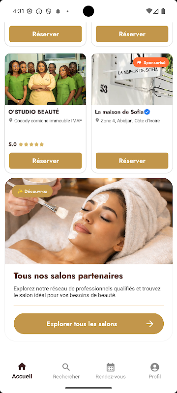 در حین رزرو، اگر سالن خاصی پیشنهاد یا تخفیف در خدمات ارائه دهد، کاربران می توانند از آن بهره ببرند. پس از رزرو یک قرار، کاربران می توانند جزئیات قرار خود را در تاریخچه قرار مشاهده کنند، که به عنوان آینده، گذشته یا لغو شده طبقه بندی شده است.