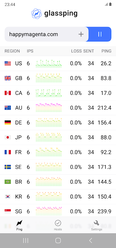Glassping امکان نظارت بر وب در زمان واقعی را فراهم می کند. برای مدیران سیستم و دارندگان وب سایت برای بررسی در دسترس بودن سرور ساخته شده است. اگر کار منبع شما مختل شود ، شیشه زدن به شما اطلاع می دهد. وب سایت های خود را از مراکز اصلی داده جهان پینگ کنید ، چندین سرور اضافه کنید و میانگین زمان پاسخ را پیگیری کنید. اعلان های فشار از کار افتاده را دریافت کنید و 24/7 در جریان باشید.