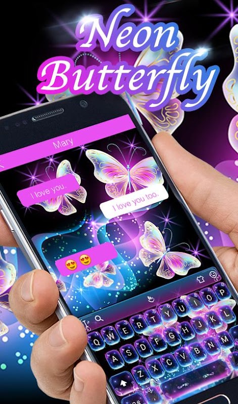 Smart& Fast Glitter Neon Purple Butterfly Theme. Emoji, Stickers for free!
