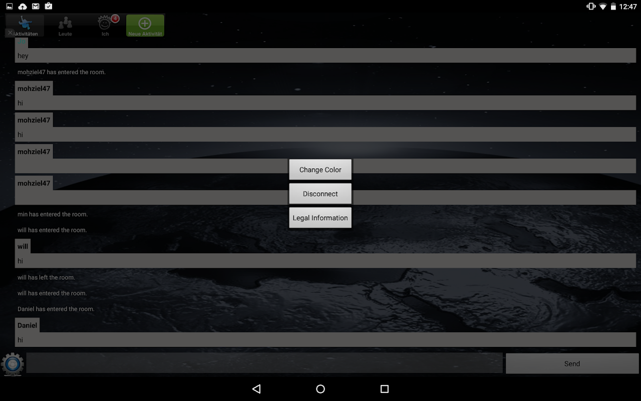 Data privacy: Your messages are only stored temporarly on our servers and will be deleted after delivery to your chat partner. No IP or other connection data will be stored.