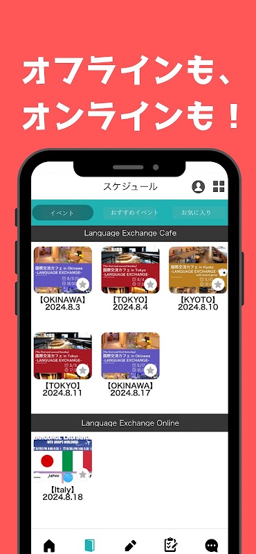 شما به راحتی می توانید شرکت خود را در رویدادهای تبادل زبان از برنامه رزرو کنید.