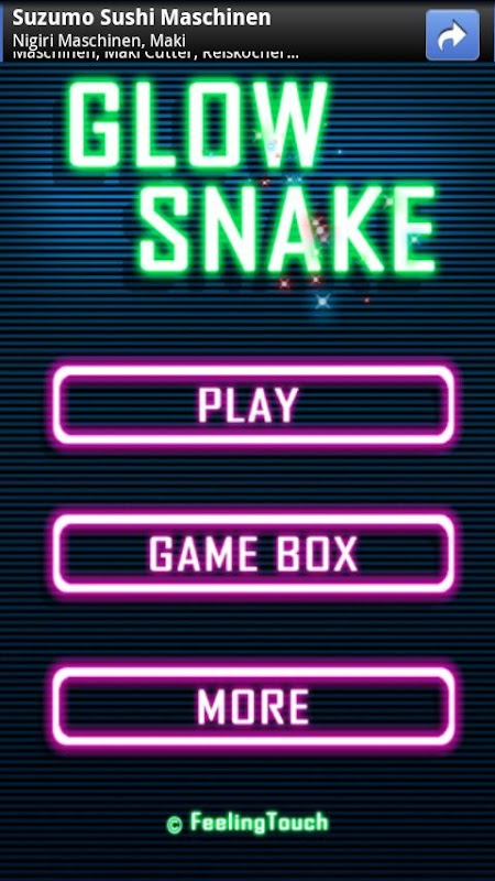 Classic snake game for android platform with colorful glow graphics.