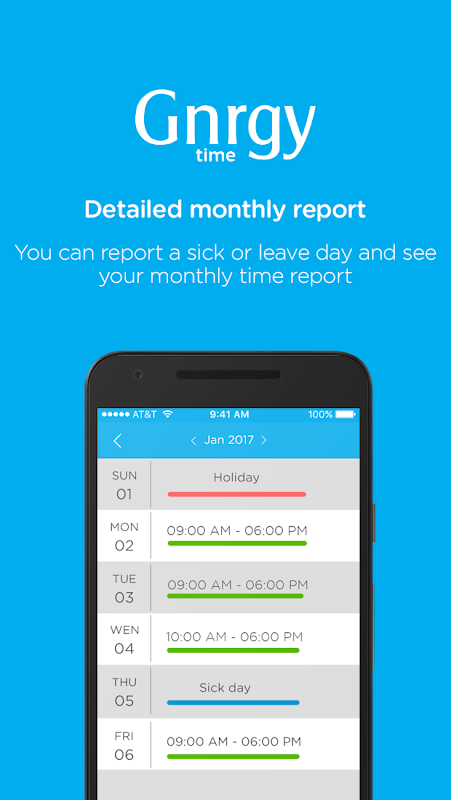 برنامه اجازه می دهد تا کارکنان را بررسی کنید در / چک کردن و پیگیری از ساعات کار خود را. کارمندان همچنین می توانید از تاریخی در / از نیز به عنوان یک روز بیمار یا ترک روز گزارش.
