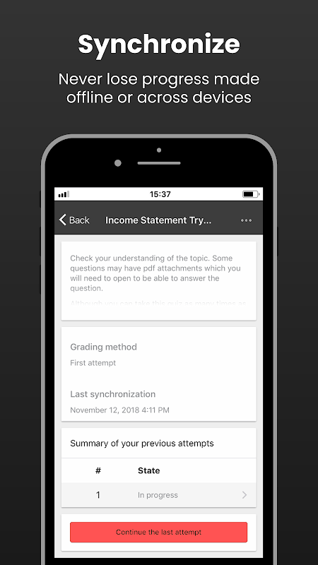 آیا می خواهید در قطار یا هواپیما مطالعه کنید؟ حالا شما می توانید تمام مواد خود را برای مشاهده آفلاین دانلود کنید! شما همچنین می توانید مسابقات آفلاین را کامل کنید و پاسخ های خود را بعدا در صورت اتصال بعدی ارسال کنید. از طریق تقویم آموزشی هر یک از مهلت های انتصاب را از دست ندهید. از طریق سیستم پیام رسانی، دستورالعمل ها، راهنما و مشاوره را مستقیما از مدرس یا سازمان دریافت کنید.