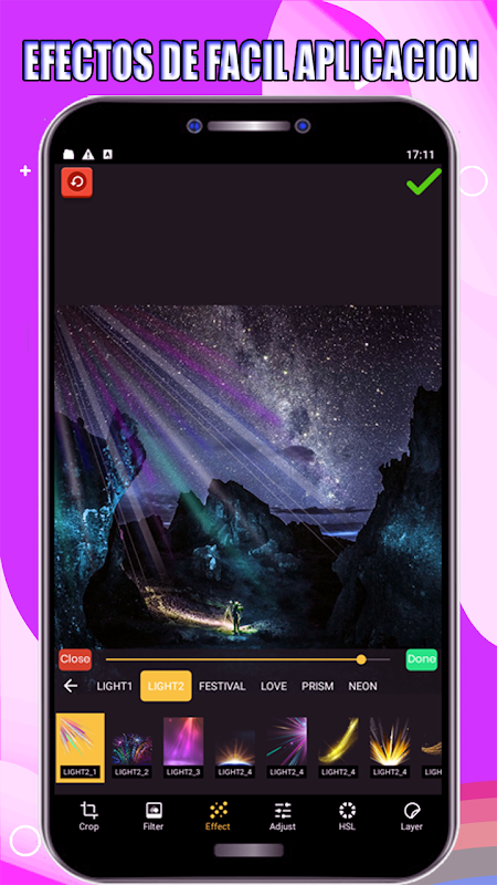 Superponga fotos para producir efectos de doble exposición con varios modos de fusión. Combina fotos a la perfección para crear montajes de imágenes fotográficas surrealistas para editar fotos y efectos de editor de imágenes en este editor de imágenes.