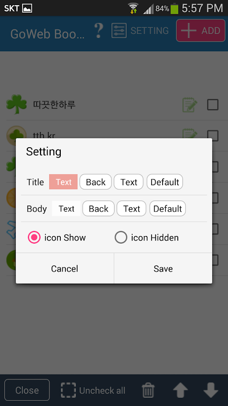 ※ نصب GoWeb ویجت نشانکها به طور جداگانه بعد از نصب برنامه GoWeb.
