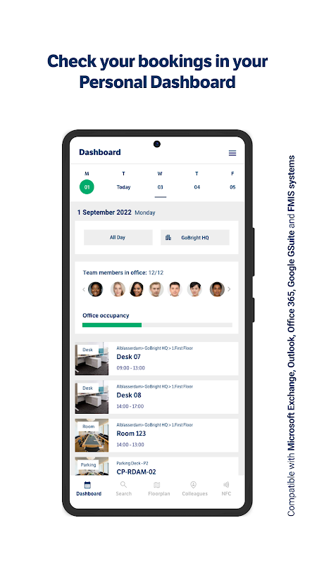 توجه: فقط در صورت خرید مجوز GoBright برای رزرو اتاق یا میز می توانید از برنامه GoBright استفاده کنید. اطلاعات بیشتر در مورد این را در وب سایت ما بخوانید.