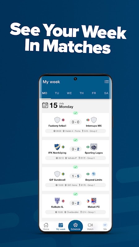با این برنامه بهترین ابزار برای پیگیری مسابقات را دارید. شما کل برنامه بازی، تمام اطلاعات تیم و نتایج زنده از هر بازی را دارید. حتی می توانید ببینید چه کسی گل زده است. یک تیم را دنبال کنید تا بعد از هر بازی از نتایج مطلع شوید.