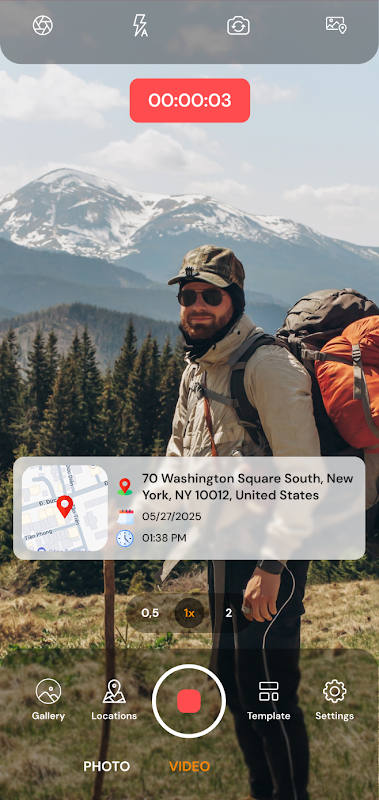 • عکس ها و فیلم های با کیفیت بالا را با همپوشانی GPS، تاریخ و نقشه بگیرید