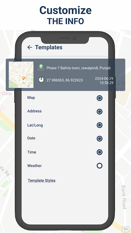 ● برنامه Geotag Photos & Add GPS Location App میتواند الگوهای نقشه نامحدودی داشته باشد.