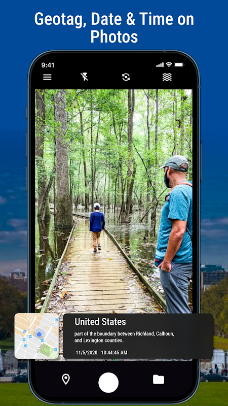 لحظات نامحدود خود را با مهر دقیق زمان و تاریخ به طور مستقیم روی عکس های دوربین خود ثبت کنید. عکس مهر زمان: برچسبگذاری جغرافیایی یک برنامه چند منظوره است که چندین زمینه مانند مکان، آدرس خیابان، تاریخ و زمان محلی، شرایط آب و هوایی دقیق، طول جغرافیایی، عرض جغرافیایی و جهت قطبنما را در عکسهای شما ادغام میکند. ویژگیهای دوربین پیشرفته اپلیکیشن Geotagging Photos به کاربران امکان میدهد عکس بگیرند یا آنها را از گالری اضافه کنند و جزئیات بیشتری مانند زمان، تاریخ، آدرس، مکان نقشه و غیره را با عکسها در کنار تمبر ارائه دهند. برای کاوش در فضای باز، سفر، و فعالیتهای مکانمحور طراحی شده است، فرآیند گرفتن و اشتراکگذاری عکسها و ویدیوهای دارای برچسب جغرافیایی را ساده میکند.