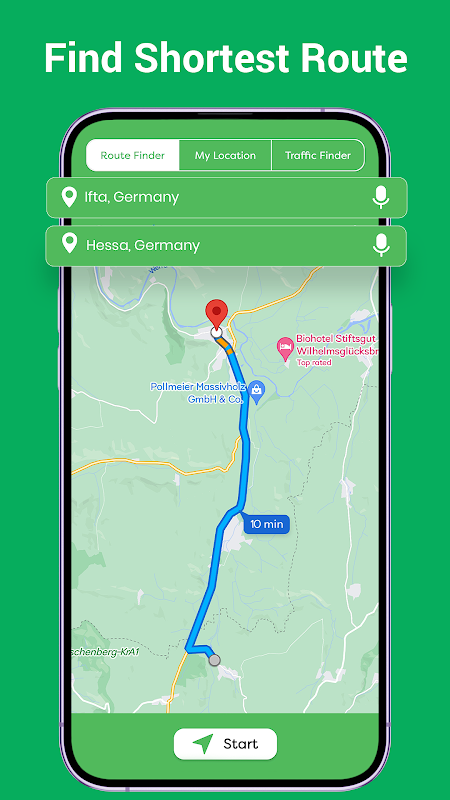 موقعیت مکانی نقشه ناوبری GPS با استفاده از برنامه رانندگی نقشه GPS ماشین یا دوچرخه شما مسیر نقشه موقعیت مکانی هدف را به راحتی پیدا می کند و بسیار روان کار می کند. اندازه این برنامه ردیابی GPS بسیار کم است و به راحتی و بدون وقت بارگیری کنید و با استفاده از برنامه های این مسیر یاب جستجو در نقشه را در هر مکان شروع کنید. با جستجوی موقعیت مکانی و همچنین به روزرسانی های ترافیک ، یافتن کوتاهترین مسیر برای مقصد اکنون بسیار آسان است. ردیابی مکان مسیر فعلی اکنون امکان پذیر است و به مکان مورد نظر خود دسترسی پیدا کنید. این برنامه ابزار مدرن اکنون در دسترس است. این مسیر یاب 2021 یک برنامه ناوبری رایگان است که همه روزه به شما کمک می کند.