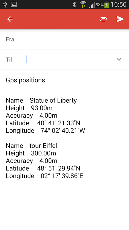 برنامه است که نمایش موقعیت GPS. برنامه به شما امکان موقعیت با یک کلیک را نجات دهد. تمام موقعیت ها را نجات داد می توان به راحتی از طریق پست الکترونیکی. اسلاید به سمت راست برای حذف یک موقعیت است.