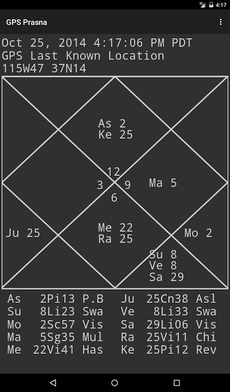 دریافت فال طالع بینی ودایی فعلی Prasna با استفاده از GPS خود محل.