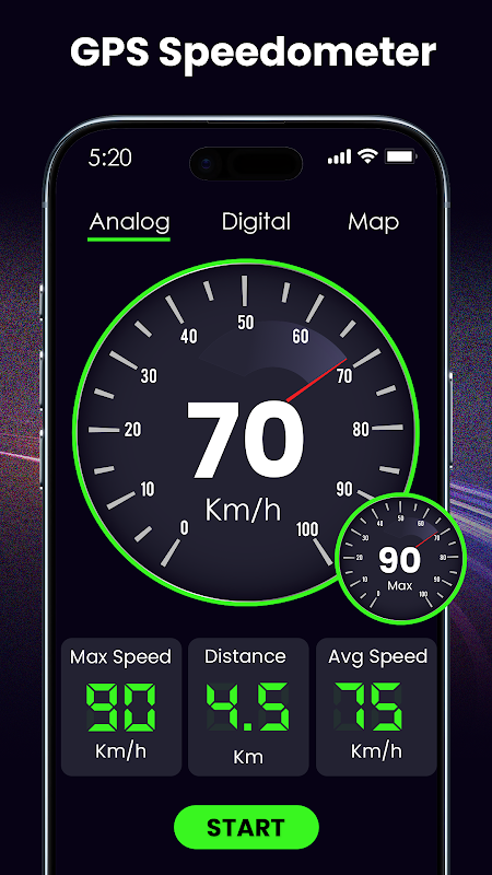 ⭐مقادیر آنالوگ و دیجیتال در اپلیکیشن سرعت سنج نمایش داده می شود.