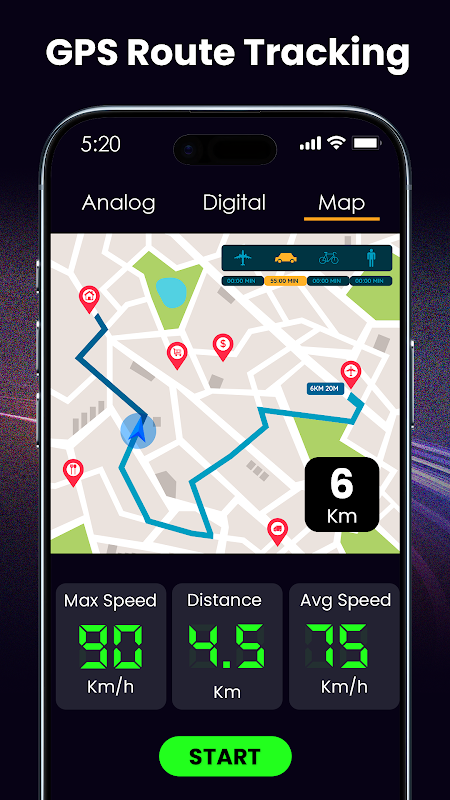 GPS Speedometer: اپلیکیشن کیلومتر شمار با HUD ابزار بسیار قدرتمندی است که برای اندازه گیری سرعت خودرو و محاسبه مسافت کل سفر استفاده می شود. نگران مسافت سفر هستید، پس از این برنامه برای اندازه گیری مسافت سفر به روشی ساده استفاده می کنید. اپلیکیشن کیلومتر شمار برای ماشین ها دارای ویژگی های زیادی مانند اپلیکیشن متر زنده سرعت قطار، اپلیکیشن سرعت سنج و نقشه ناوبری است. سرعت سنج رایگان ردیاب سرعت GPS و مسافت سنج سرعت سنج شما را به صورت آفلاین برای ماشین، سرعت سنج آفلاین برای دوچرخه، سرعت سنج آفلاین برای دویدن، سرعت سنج آفلاین برای چرخه، برنامه سرعت سنج برای بولینگ کریکت، برنامه سرعت سنج برای ماشین به صورت آفلاین، برنامه سرعت سنج برای موتور سیکلت، قایق دریایی GPS، ماشین، دوچرخه، دوچرخه، آهسته دویدن، مکان دقیق واقعی را پیدا کنید.