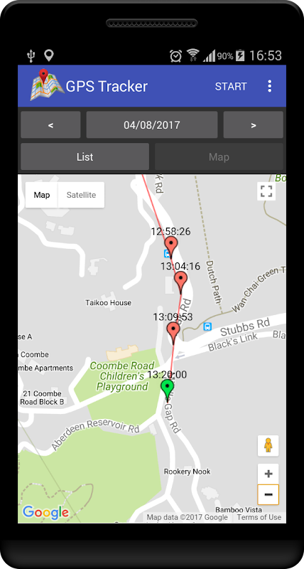 GPS Tracker runs in the background and records the current position of the device. The records can be displayed as a list or grapical as a route on a map. This app works independently of Google Play Services and the Google Maps app.