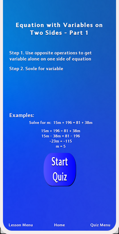مشکلات ایجاد شده توسط افراد واقعی را تمرین کنید. هوش مصنوعی در ایجاد مشکلات، آزمونها، درسها یا عملکردهای اساسی برنامه استفاده نشده است. بر اساس اصول پایه مشترک درجه 8. برنامه می تواند توسط دانش آموزان برای تمرین اضافی یا خودآموزی استفاده شود. معلمان می توانند از برنامه برای ایجاد سریع آزمون برای کلاس استفاده کنند. معلمان می توانند برنامه را باز کنند. موضوع مورد نظر را انتخاب کنید، یک مسابقه شروع کنید و مسئله ریاضی انتخابی را به هر شکلی که می خواهید مانند نوشتن روی تخته سفید، تخته گچی یا خواندن مسئله به کلاس ارائه دهید.