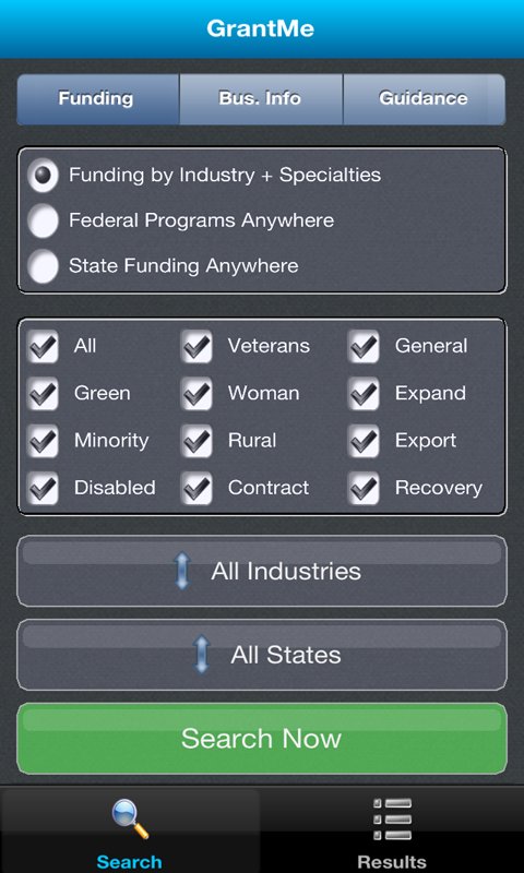 Sure, you can go to the SBA site and browse and search and eventually you might find what you’re looking for, but why bother? Now with GrantMe you can target your search to your needs anytime, anywhere.