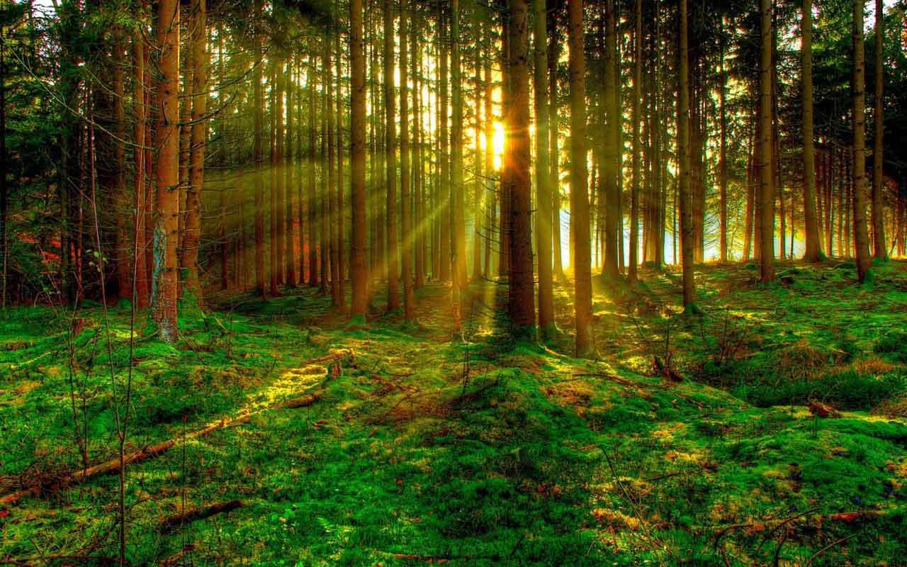 Green Forest. Through the warm sun and enjoy the beautiful green forests. Realistic 3D effects,fantasy green forest on your screen. There is a charming creek, there is a beautiful waterfall. Green Forest HD wallpaper, decorate your device!