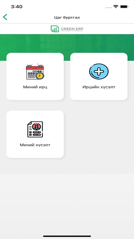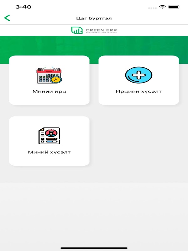 - از برنامه Green ERP Mobile برای برنامه توسط کارمندان استفاده کنید.