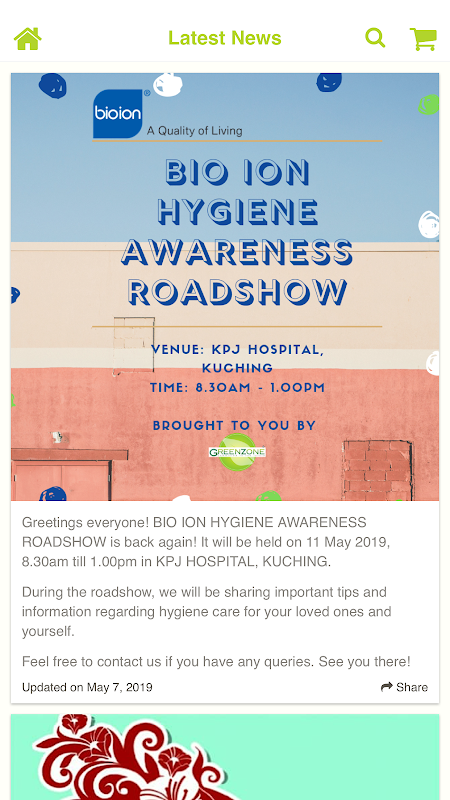 Furthermore in 2015, Greenzone Hygiene has authorized as sole distributor of East Malaysia & Brunei for full range of Bio Ion products with the Bio-technology from Japan.